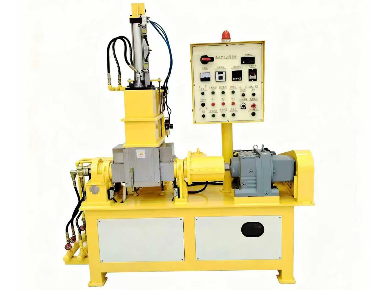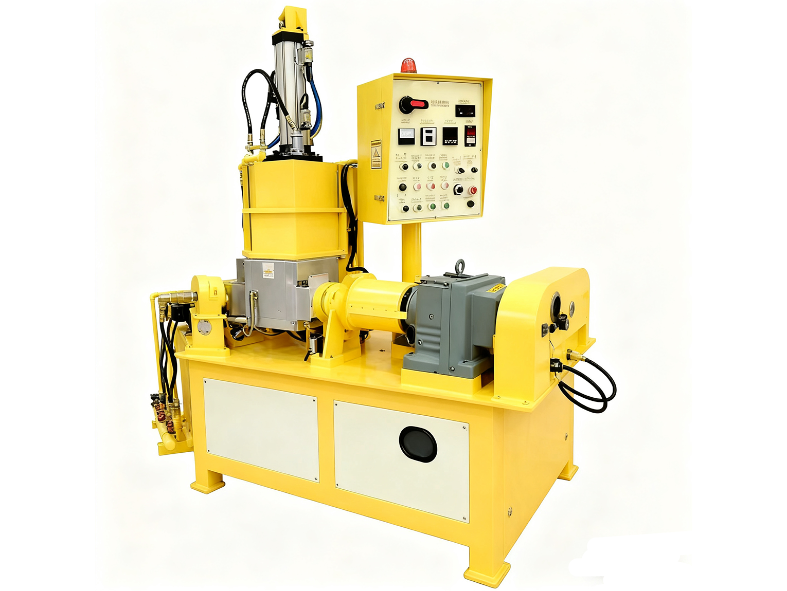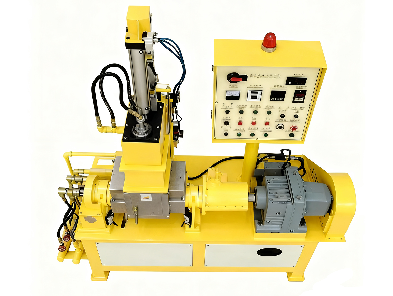 - 针对性修复密封:①腔体门:更换丁腈橡胶密封圈(优先选耐油型,适配橡胶加工中的油污),安装时在密封圈表面涂少量硅脂(增强密封性,避免干摩擦磨损);②卸料口:更换食品级硅胶密封垫(1L 密炼机卸料口小,硅胶垫弹性好、贴合度高),若卸料口有变形,用砂纸打磨平整后再装新垫;③转子轴端:更换骨架油封(型号按转子轴直径匹配,如轴径 20mm 选 TC20×35×7 型),安装时确保油封唇口朝向腔体(防止空气进入);