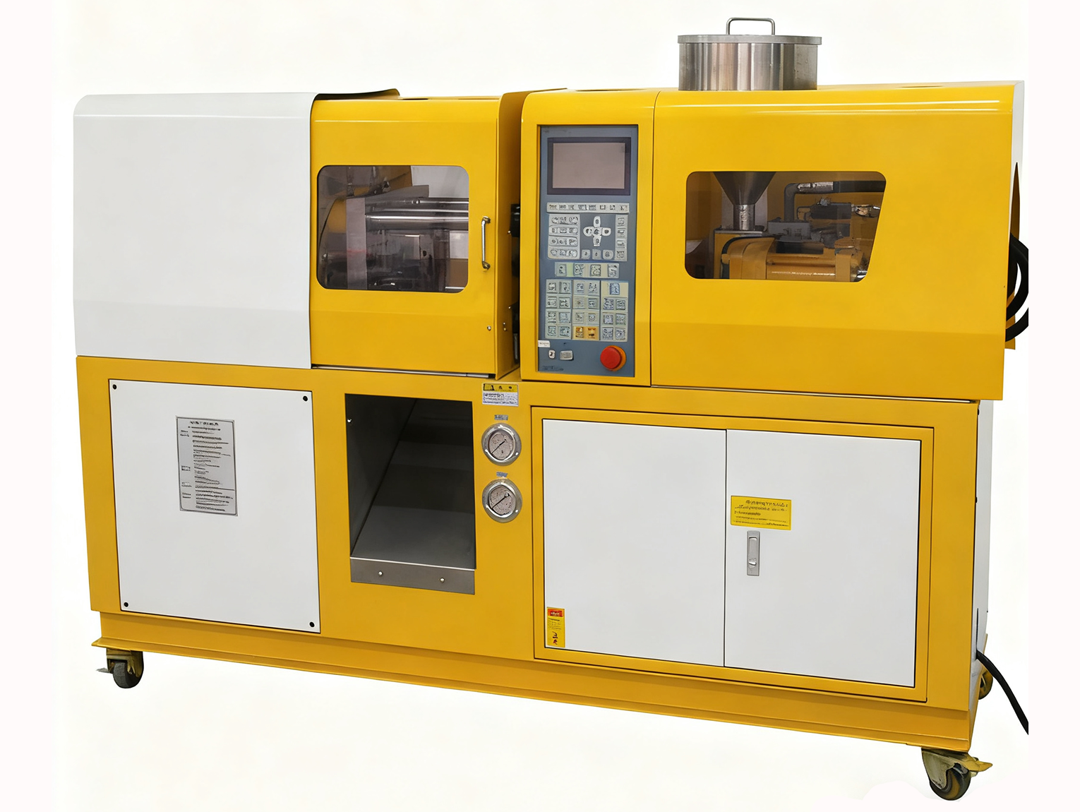 机身低本应具备更好的稳定性(重心低、抗倾倒能力强),但振动明显的根源是 “无法有效抵消注塑过程中的冲击力”,核心依赖 “外部固定约束” 与 “内部压力适配” 的协同: