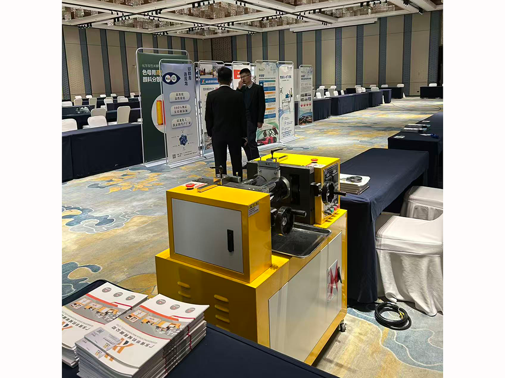 锡华针对性展示的双辊开炼机,凭借优异的色母粒混炼分散能力,可快速实现色母粒与基材的均匀融合,直观呈现不同配方色母粒的着色效果与分散状态,满足联会现场 “即测即看” 的需求。同时,设备操作便捷、运行稳定,能适配黑色母、彩色母、功能母粒等多品类测试,现场协助多家色母粒企业完成配方验证,解决了传统设备 “分散效果差、演示效率低” 的痛点。