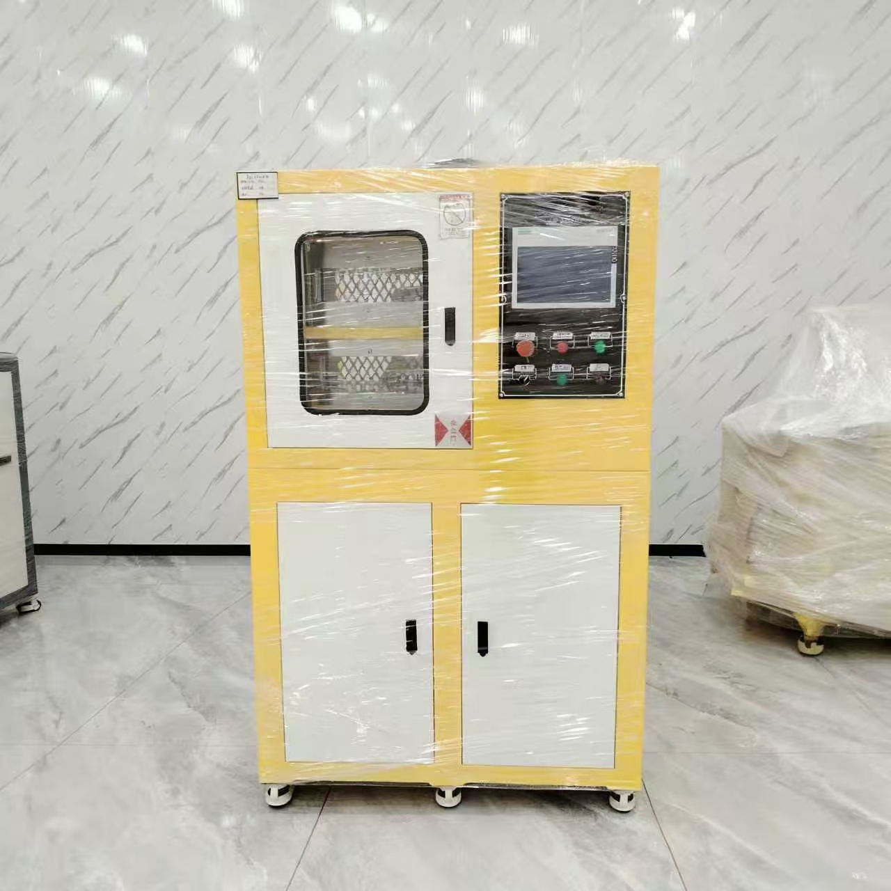 - 自动卸压与取件:程序结束后,系统按预设顺序卸压、降温,待温度降至安全范围,触控屏提示操作完成;科研人员取出模具即可获得表面平整、尺寸标准的硫化试样,全程无需手动调节。