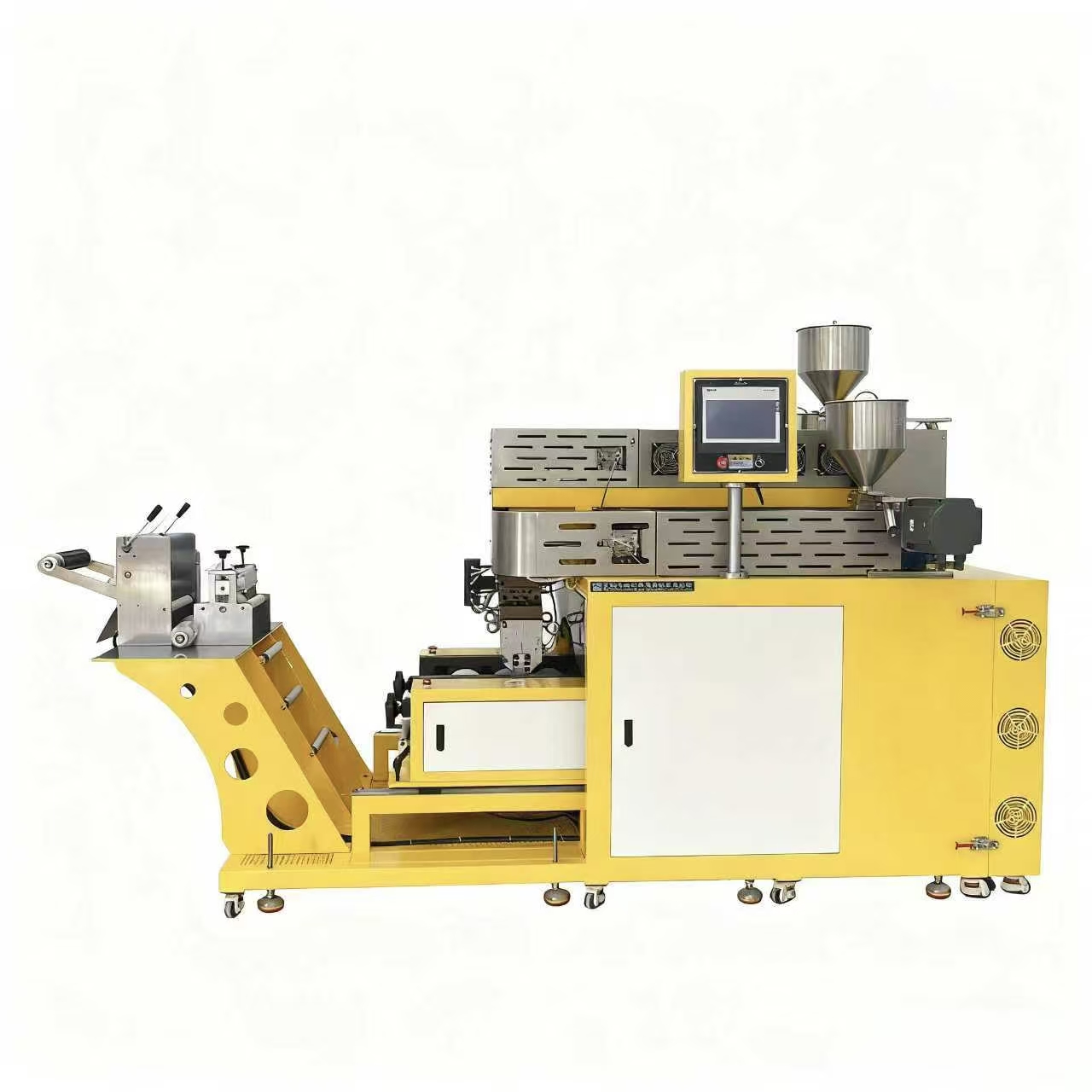 适配实验室场景,灵活又省心小型化机身无需占用过多空间,原料用量适配 “微批量试配” 需求,避免研发阶段的物料浪费;各塑化单元与模头易拆卸清洁,能快速切换不同原料组合,满足 “多配方、高频次” 的研发特点。