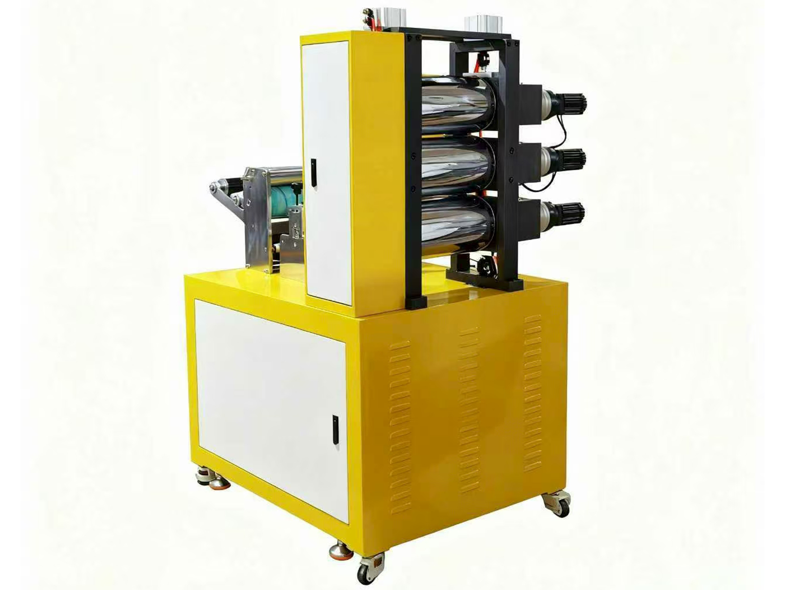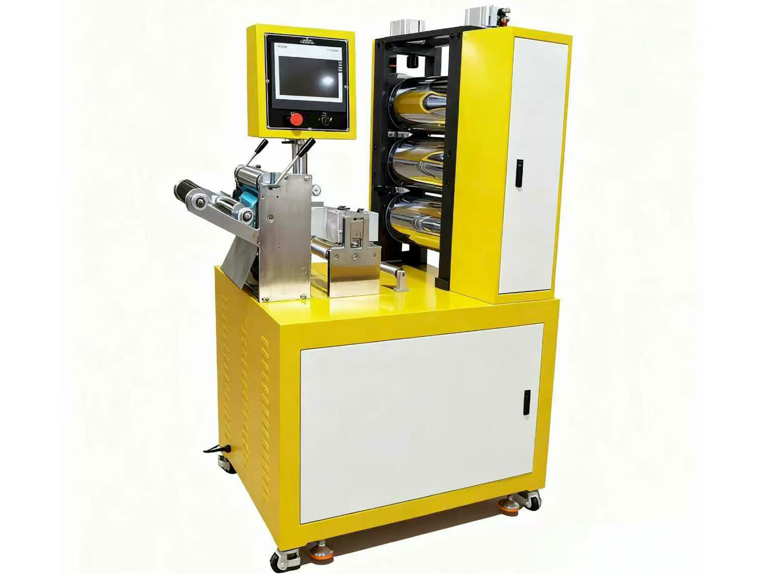 设备以 “物料微量化预塑化 - 三辊梯度控轧 - 辊温协同定型 - 在线监测收卷” 为核心逻辑,通过三组辊筒的压力梯度、温度梯度协同作用,实现材料从熔融态到薄片的连续转化,完美复刻工业三辊压延的核心工艺链: