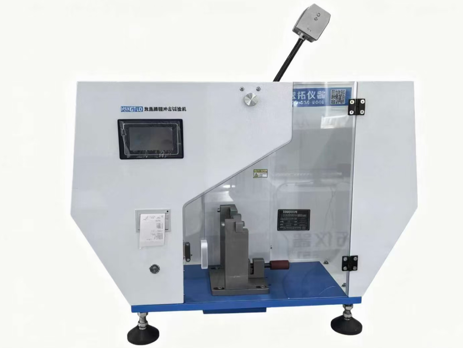 夹具采用标准化快拆接口,更换时无需重新校准定位;摆锤配备多能量级别可选,且支持单独更换,适配从低韧性脆性材料到高韧性弹性体的全范围测试;设备内置 “能量自动校准” 功能,定期提醒用户进行校准,确保测试精度长期稳定;测试舱采用高强度透明防护罩,既保障操作安全,又可直观观察冲击过程;机身底部装有减震脚垫,减少冲击振动对周边精密仪器的影响。