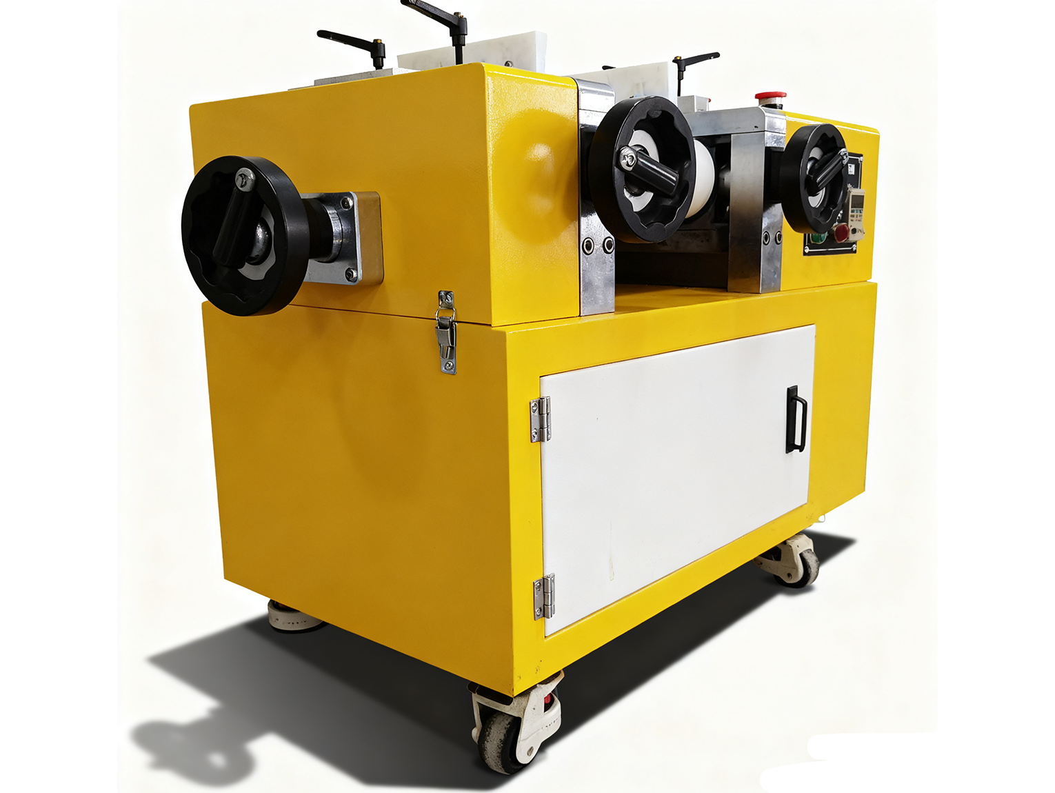 - 配备辊间间隙微调旋钮(精度 0.1μm),可根据物料粘度(如高粘度橡胶浆料、低粘度涂料)精细调整,满足不同细度需求(从几微米到纳米级);
